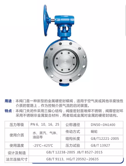 金属硬密封蜗轮传动法兰蝶阀